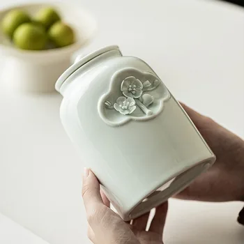 Chinese Traditional Style Ceramic Tea Storage Jar Candy Salt Canister Business Gifts