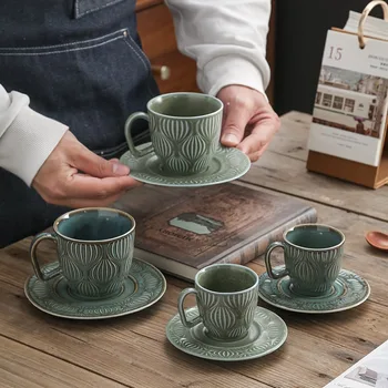 MSH 220ml Vintage Style Ceramic Latte Mug with Wheat Relief Design for Cafe
