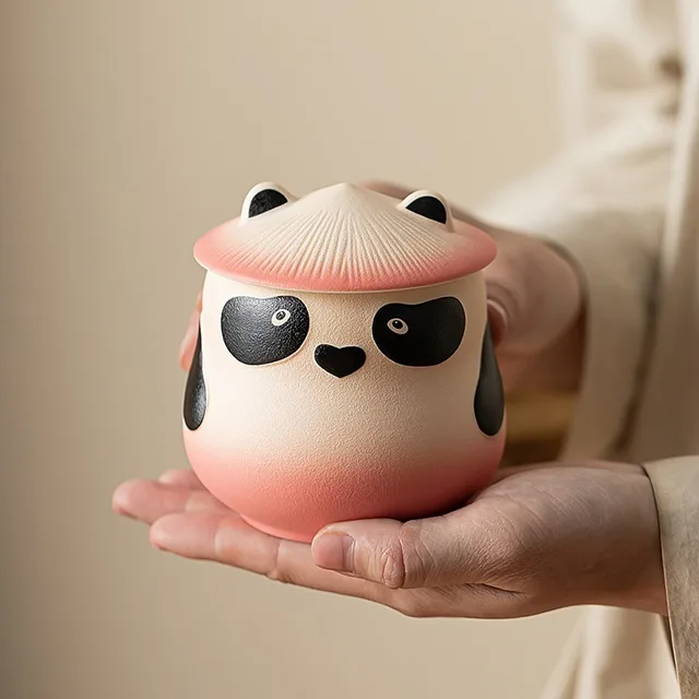 Promotion Gift Gradient Pink Cute Panda Sealing Ceramic Candy Jar